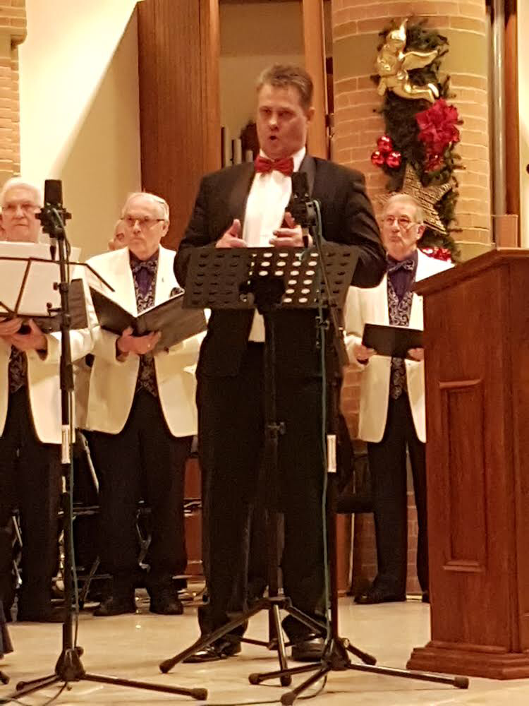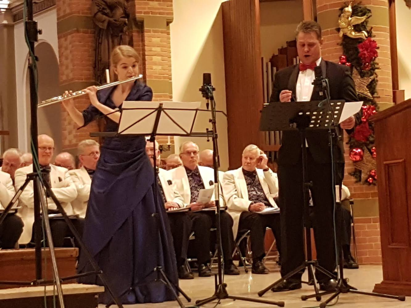 Samen met Erica Vogel een Kerstmedley aan het doen tijdens de Volkskerstzang te Heemskerk